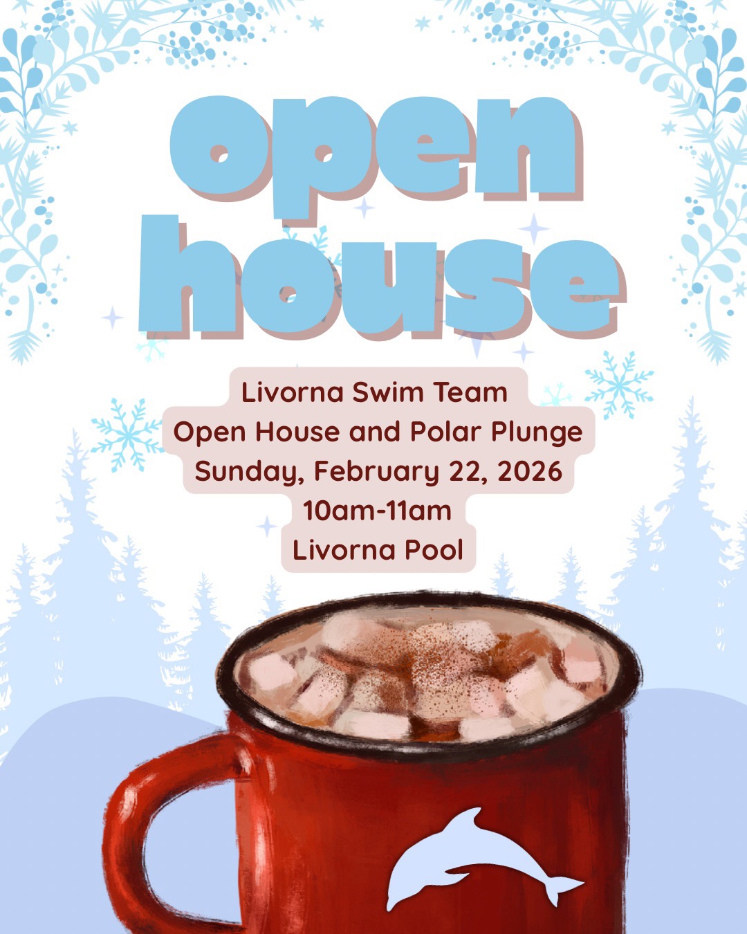Come brave Livorna Pool before we heat it up for the season!! (Actually jumping in is optional!) Enjoy hot cocoa, and bring your friends along! We will also have an Open House where our friends and neighbors can learn more about the Dolphins! Event will run from 10am until 11am. Those who would like to jump into the pool will do so at 10:15am! |